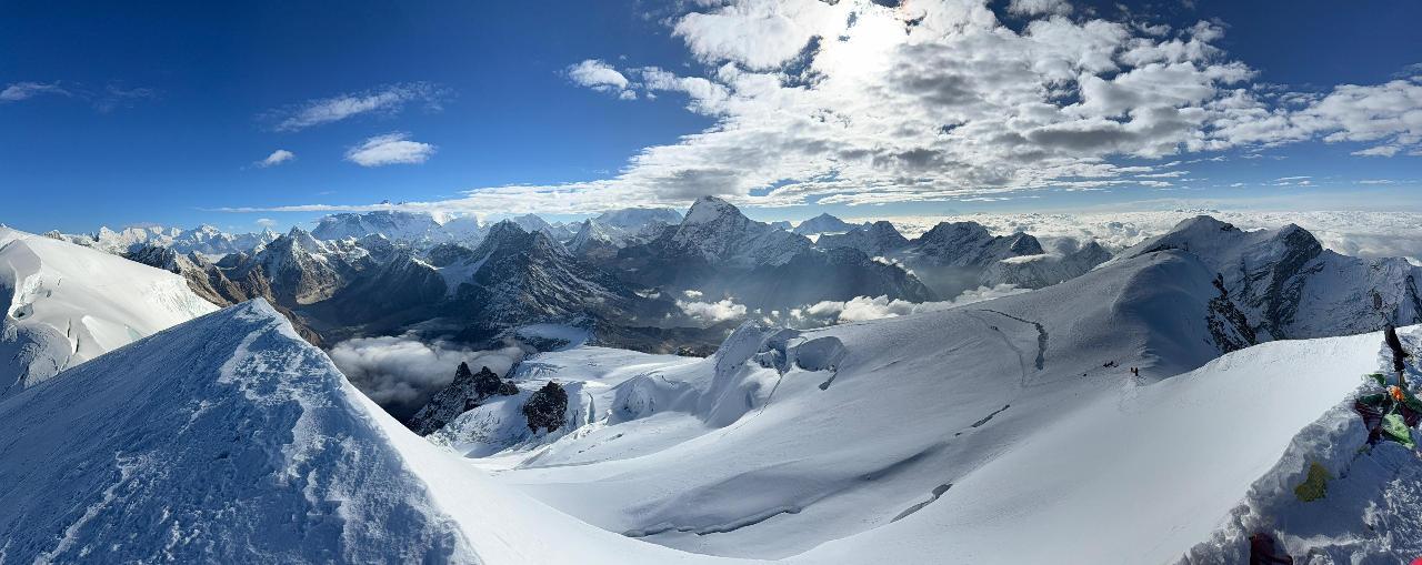 Nestled in Nepal's Solukhumbu district, Mera Peak offers a captivating adventure through lush pine and rhododendron forests into remote alpine valleys. The journey to Mera Base Camp unfolds across uninhabited terrain with stunning views of the Himalayas. Rising just south of Everest, Mera Peak is the highest trekking peak in Nepal. Though the climb is non-technical, deep snow and crevasses can challenge the summit push. Along the way, you'll experience the pristine beauty of Nepal’s wild hillsides and glaciers, far from the crowded trails.
