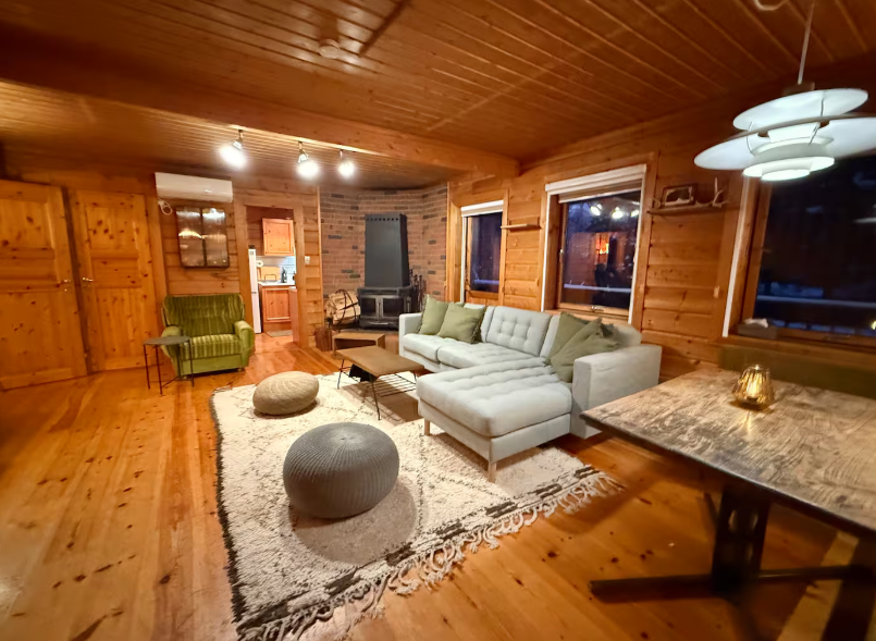 Beautifully renovated 4-bedroom home, perfect for groups up to 7 guests. Just a short drive from the slopes, it offers a bright living area, a kitchen, 1 bathrooms, parking, 2 bedrooms with 4 single beds total, 1 bedroom with king bed and 1 bedroom with 4 single beds. Cozy atmosphere, stylish design, and great privacy — ideal for relaxing after a ski day. This is the house for the departures: 08-15 February 2026 and 15-22 Febraury 2026.